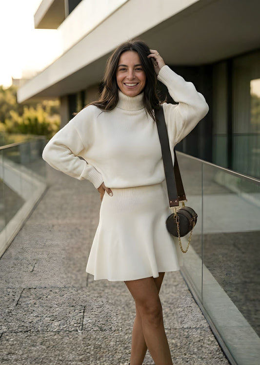Women's Two Piece Turtleneck Sweater & Mini Skirt Set