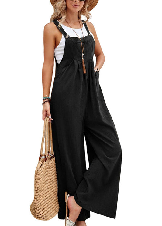 Ceylan Women’s Wide Leg Jumpsuit with Button Straps and Pockets