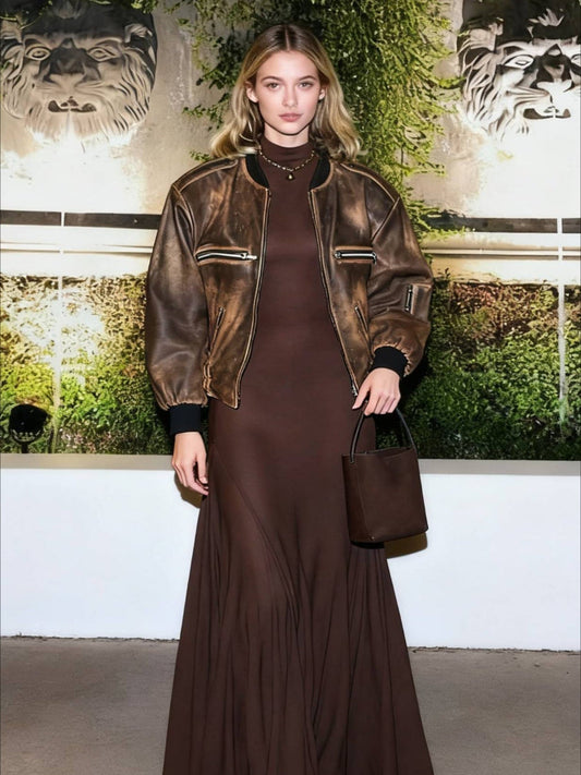 Ceylan Women's Oversized Faux Leather Bomber Moto Jacket