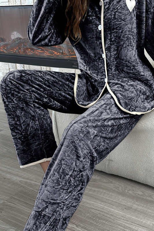 Ceylan Women’s Crushed Velvet Pajama Set Contrast Piping