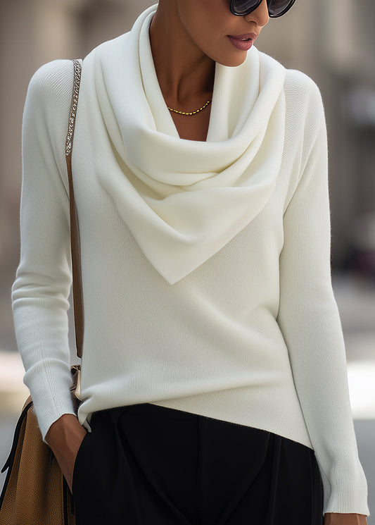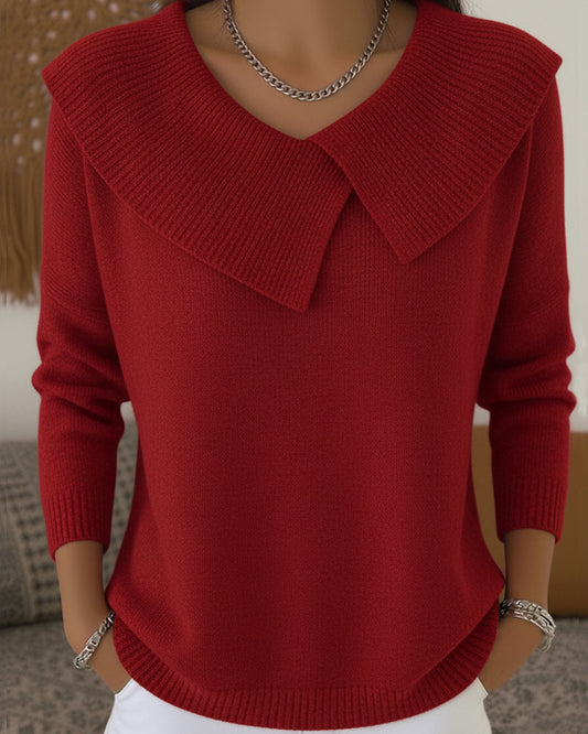 Ceylan Women’s Knit Sweater Wide Folded Collar Relaxed Fit