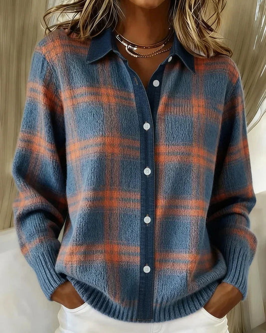 Ceylan Women's Sweater, Off Shoulder Gingham Check
