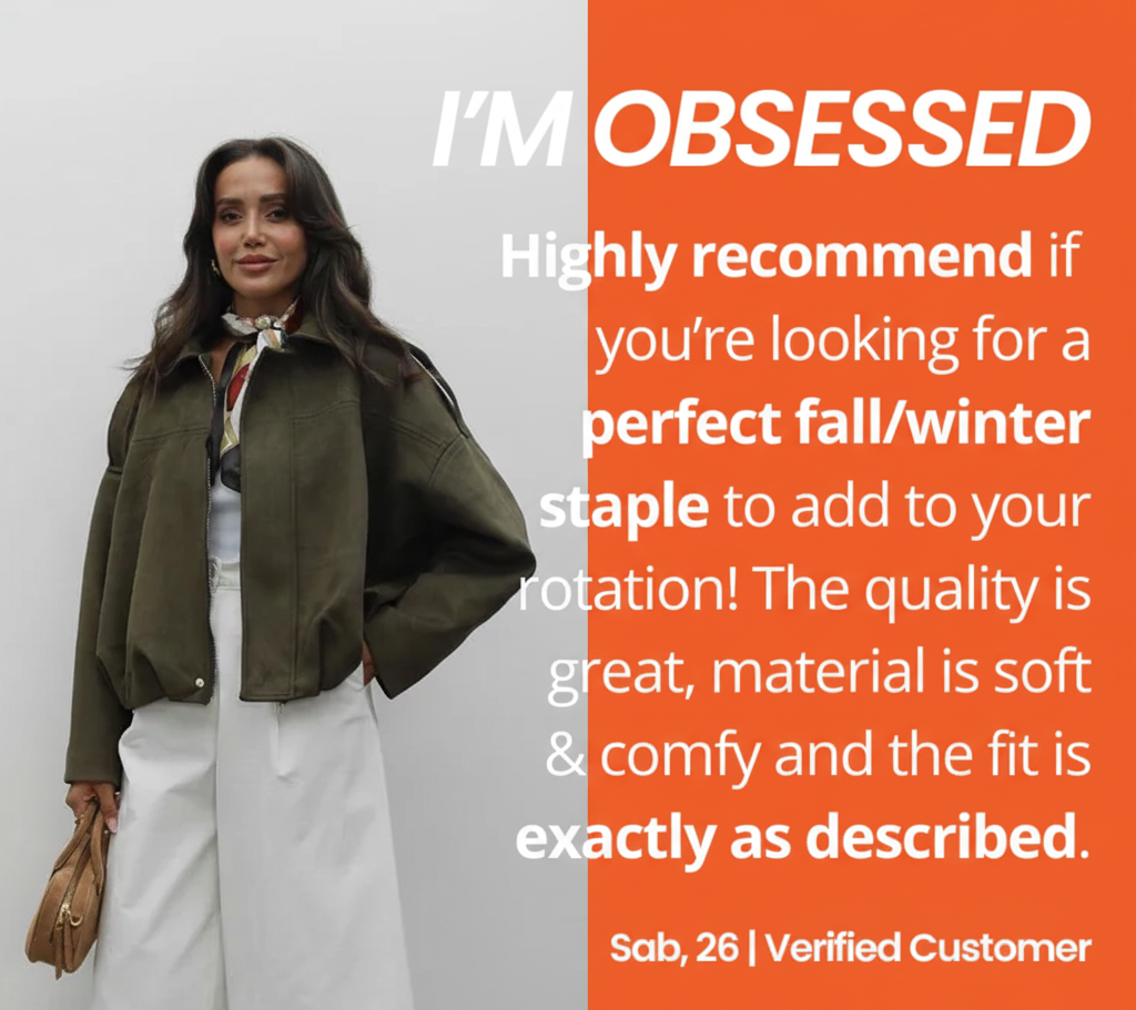 We believe you deserve warmth and style without the risk. That’s why every Ceylan® Cozy Suede Bomber Jacket comes with our 30 Day Comfort Guarantee.
