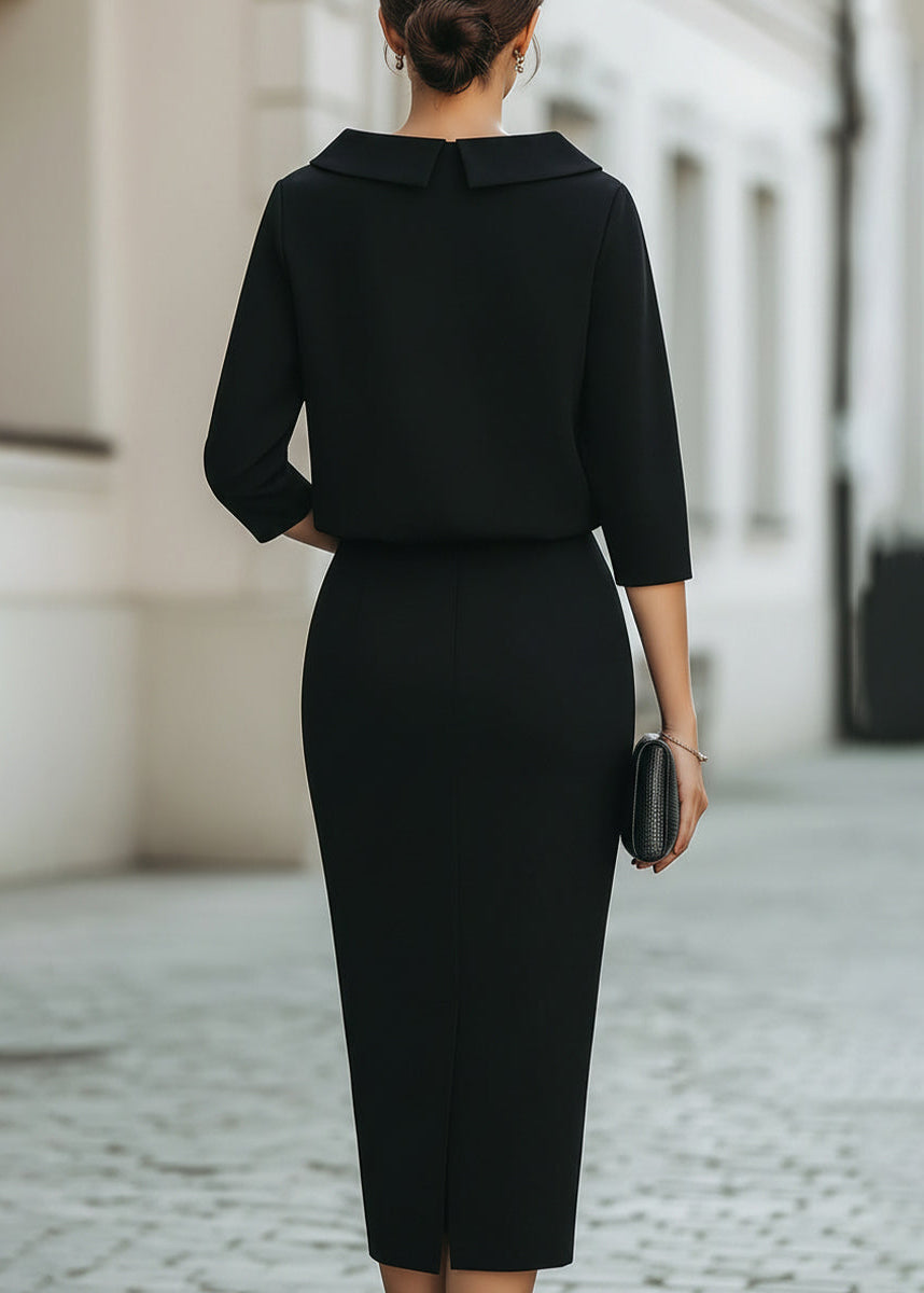 This refined two-piece set features a structured boat neck top paired with a streamlined midi skirt, creating a cohesive and tailored hourglass silhouette. Crafted from a premium matte crepe blend with a hint of stretch, the ensemble provides a smooth, flattering fit that remains comfortable for all-day wear. Designed with 3/4 sleeves and a modest below-the-knee hemline, this co-ord set is the definitive choice for high-stakes professional meetings, gallery openings, or upscale evening events.