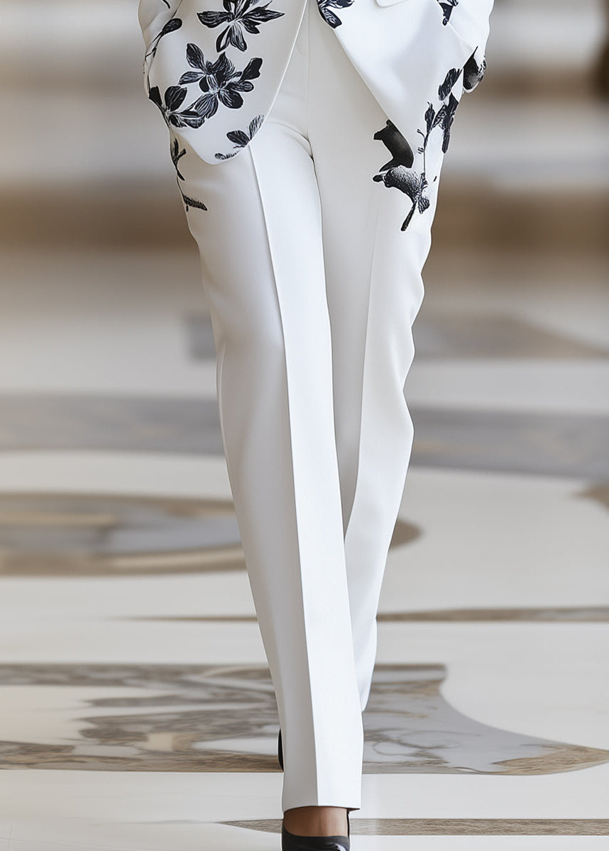 This premium two-piece set is masterfully tailored to provide a sharp, commanding silhouette for the modern woman. The structured blazer features a deep-V neckline and precision-padded shoulders, paired with high-waisted straight-leg trousers that create an elongated profile. Crafted from a luxurious mid-weight crepe with a high-definition floral motif, this ensemble is the ultimate choice for garden weddings, high-profile luncheons, and exclusive spring racing events.