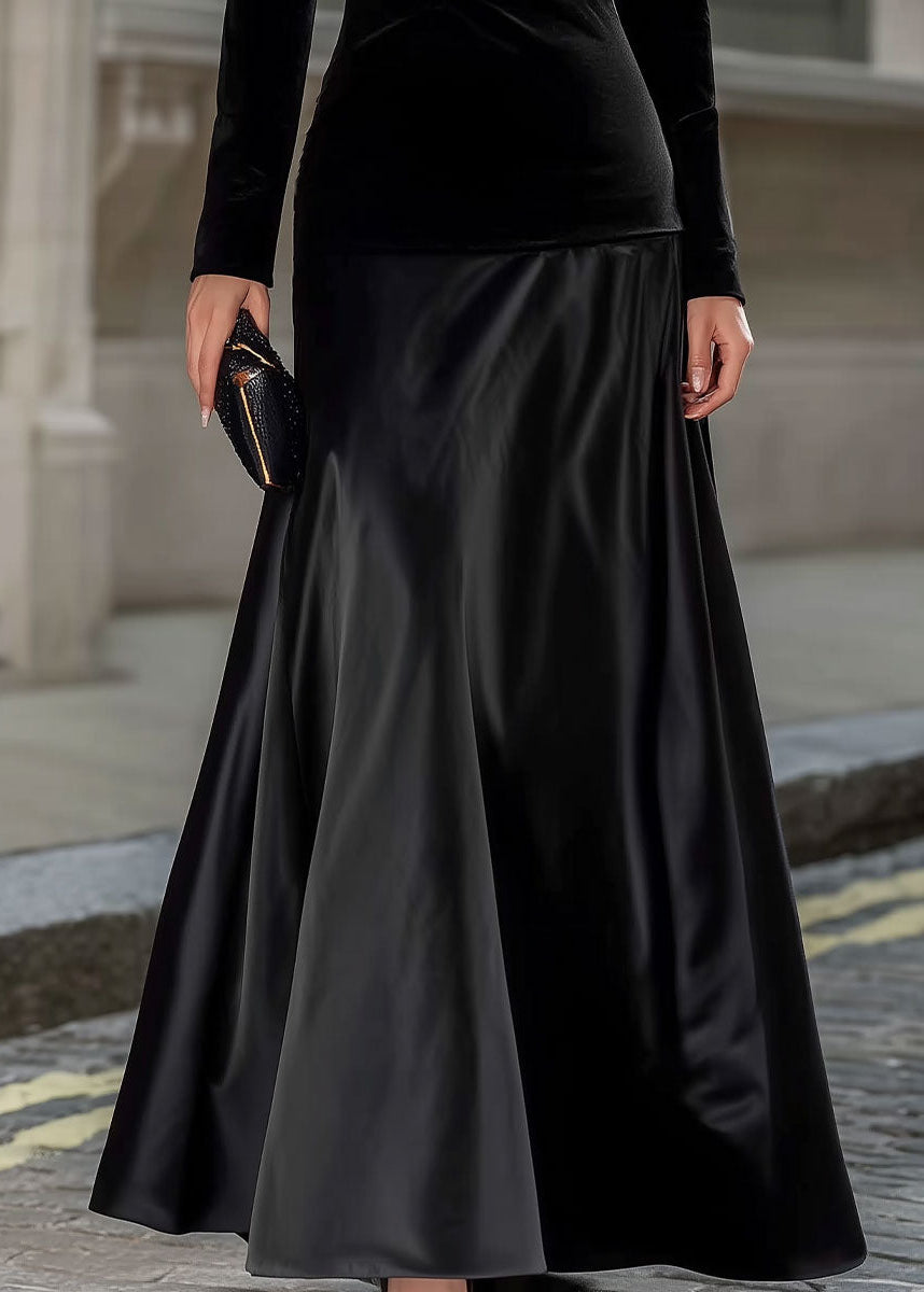 Luxurious mixed-media construction pairs rich velvet with shimmering satin for a high-contrast aesthetic Classic A-line silhouette offers a universally flattering fit that flows gracefully with every movement Full-length sleeves and a refined neckline provide a sophisticated profile for formal winter occasions Premium heavy-weight fabrics ensure a smooth structured drape and a comfortable high-end feel