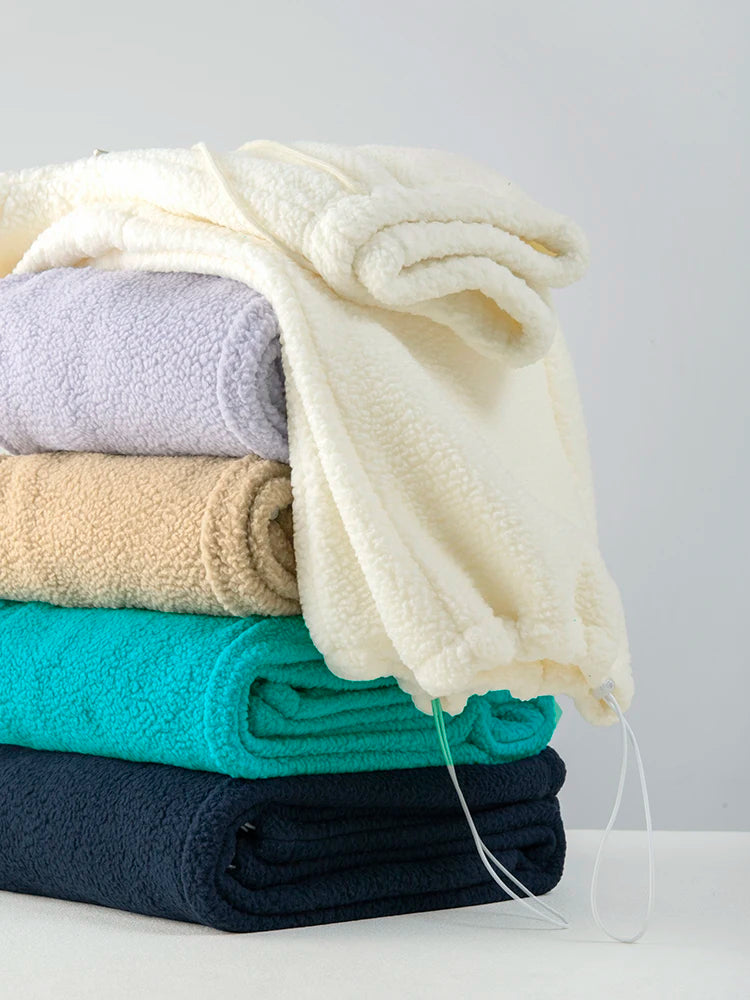 Experience the ultimate blend of warmth and relaxed style with our Wide Leg Fleece Trousers. Crafted from plush, insulating teddy-style fleece, these high-waisted pants offer an effortlessly relaxed, wide-leg silhouette that drapes beautifully. A drawstring waist ensures a comfortable, adjustable fit, making them the perfect staple for elevated loungewear, cold-weather travel, or chic everyday comfort.