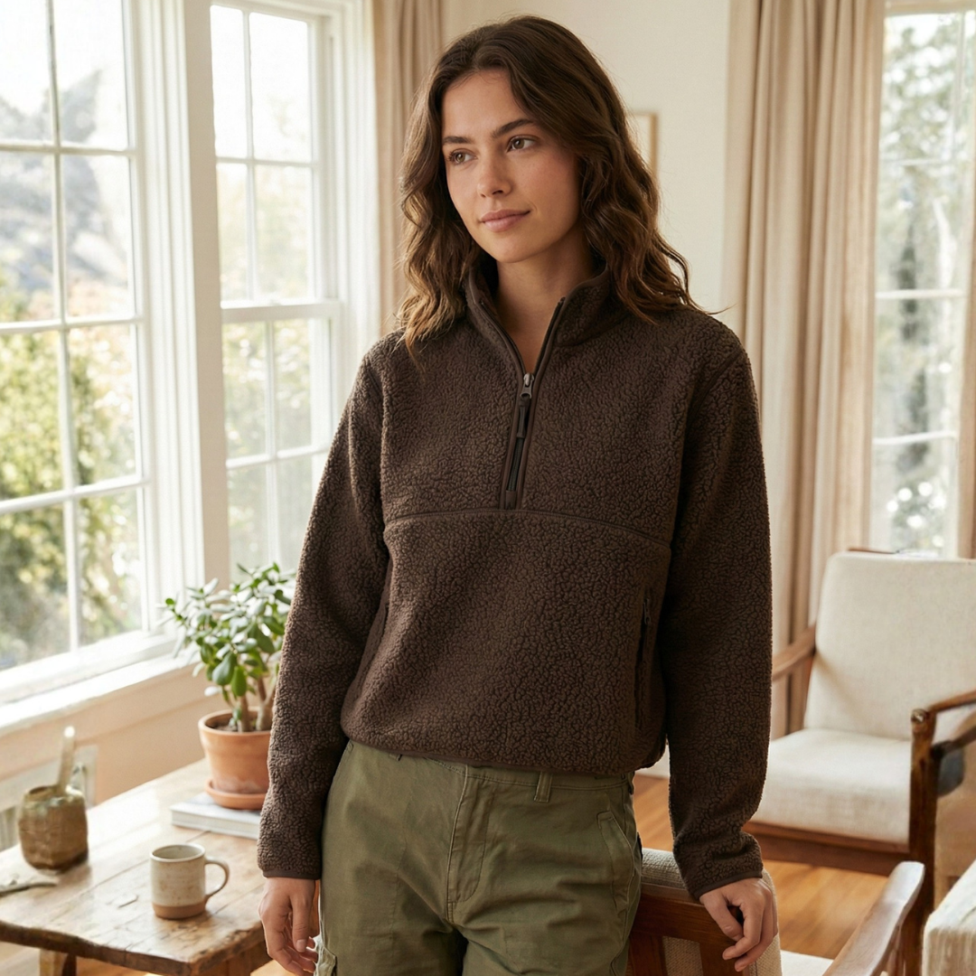 Designed for extreme warmth without the weight, this half-zip pullover is crafted from premium high-pile thermal fleece that mimics the softness of sherpa. The relaxed silhouette and drop-shoulder design offer effortless layering, while the stand-up collar and adjustable half-zip closure provide versatile climate control. Whether you're heading for a winter hike or a casual weekend coffee run, this breathable yet insulating piece delivers a sophisticated take on outdoor utility.