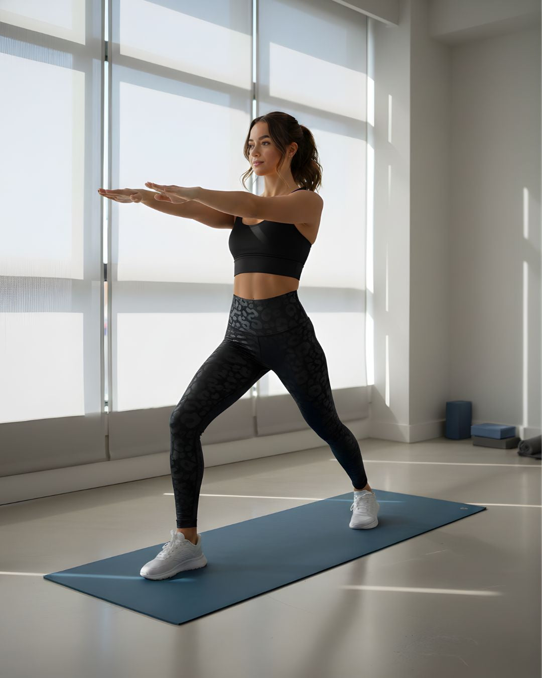 These high-performance leggings feature a striking metallic leopard foil finish on premium compression fabric, designed to sculpt and support during high-intensity workouts. The silhouette offers a streamlined fit with a wide, stay-put waistband that sits comfortably above the hips for maximum coverage and confidence. Ideal for yoga, gym training, or high-end athleisure styling, the moisture-wicking material ensures a sleek look that transitions effortlessly from the studio to the city.